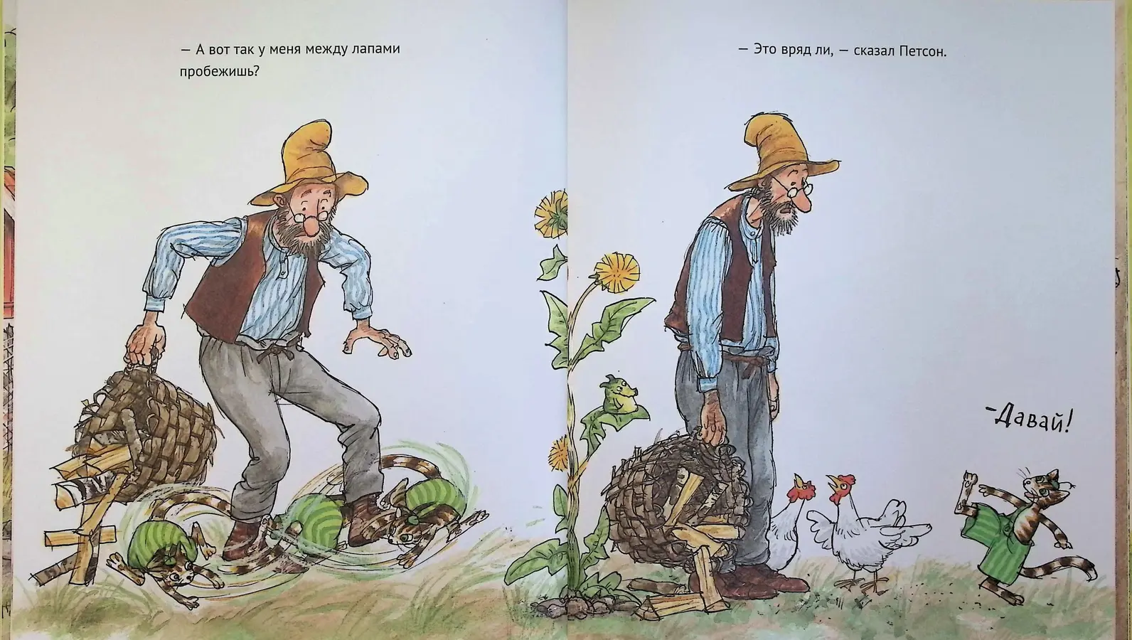 «А ну-ка, Петсон, допрыгнешь до дома на двух ногах?» — бросает вызов неугомонный Финдус. Старик Петсон пытается сохранить серьезный вид и заниматься хозяйством, но разве можно устоять, когда рядом такой затейник? В этой доброй книжке-картинке вы увидите удивительное преображение: ворчливый фермер поддается на уговоры котенка и вместе с ним начинает распугивать кур и карабкаться на деревья, совсем как в далеком детстве.