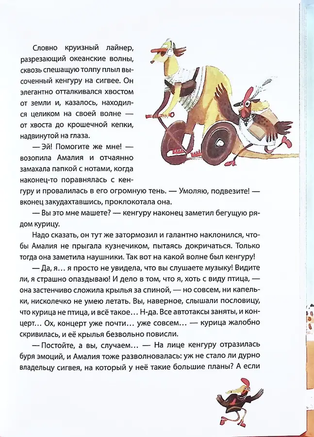 Автор Наталья Песочинская создала невероятно обаятельную героиню. Помимо опозданий, у Амалии есть и другая беда — она курица, а значит, не умеет летать. Но она так об этом мечтает! Эта книга в лёгкой и юмористической форме рассказывает о дружбе, взаимовыручке и о том, как важно следовать за своей мечтой.