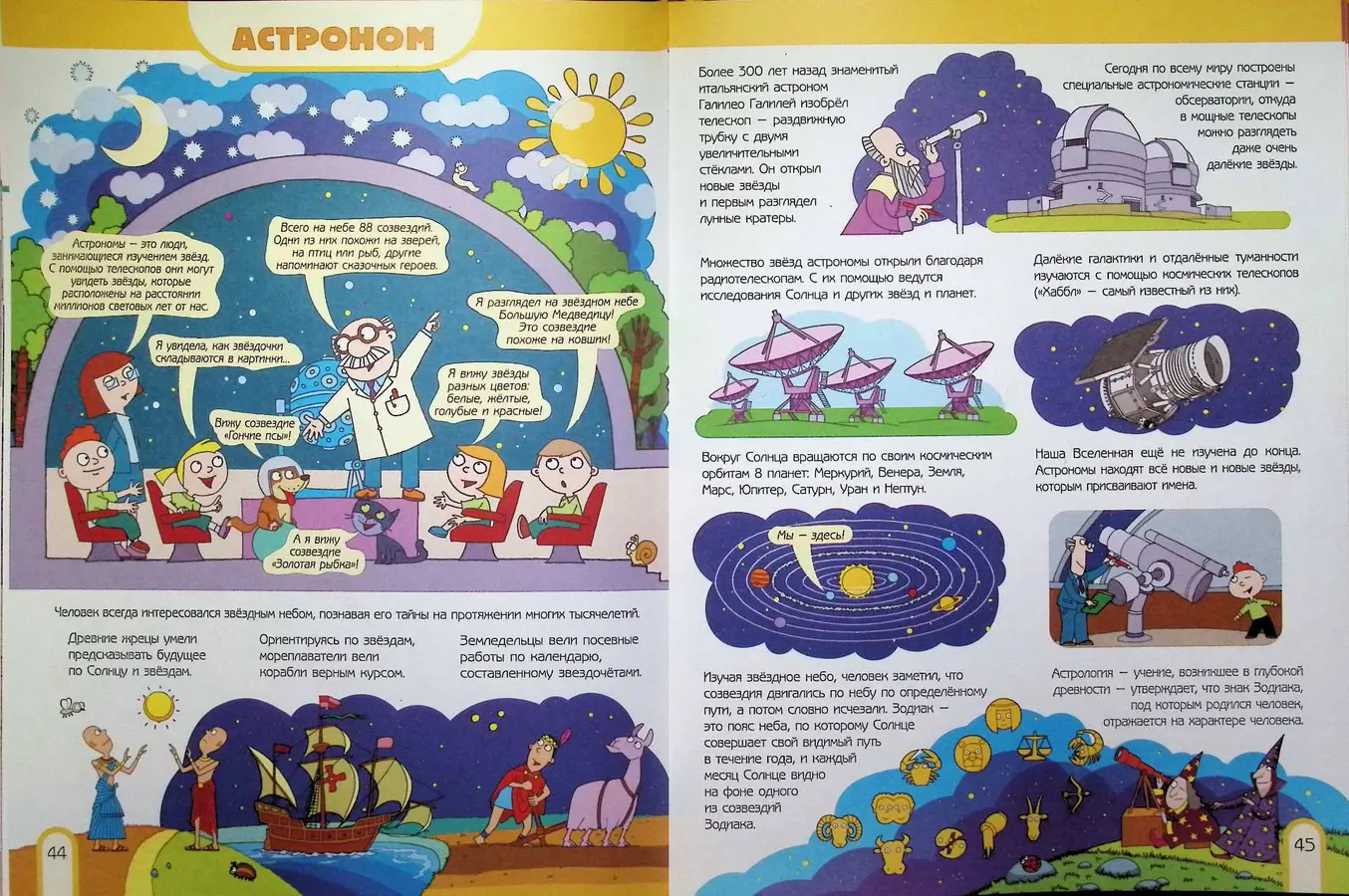 В нескучной, игровой форме книга дает представление о множестве важных и нужных дел. Чем занимаются учитель, врач, художник, архитектор, водолаз, ветеринар, строитель и многие другие? Веселые картинки и понятные тексты расскажут об особенностях разных специальностей и помогут понять, что может стать интересным и любимым занятием на всю жизнь.
