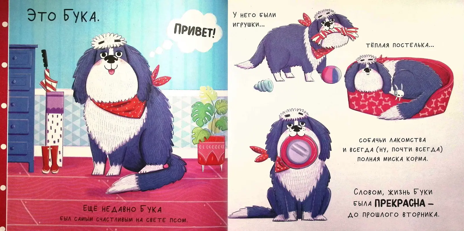 Совсем недавно пёс Бука был самым счастливым на свете. У него было всё: уютная постелька, любимые игрушки и полная миска еды. Его жизнь была идеальной... до прошлого вторника. Именно в тот день в доме появилась ОНА — маленький, шумный и очень активный щенок по имени Печенька! Что же теперь будет с привычным миром Буки?