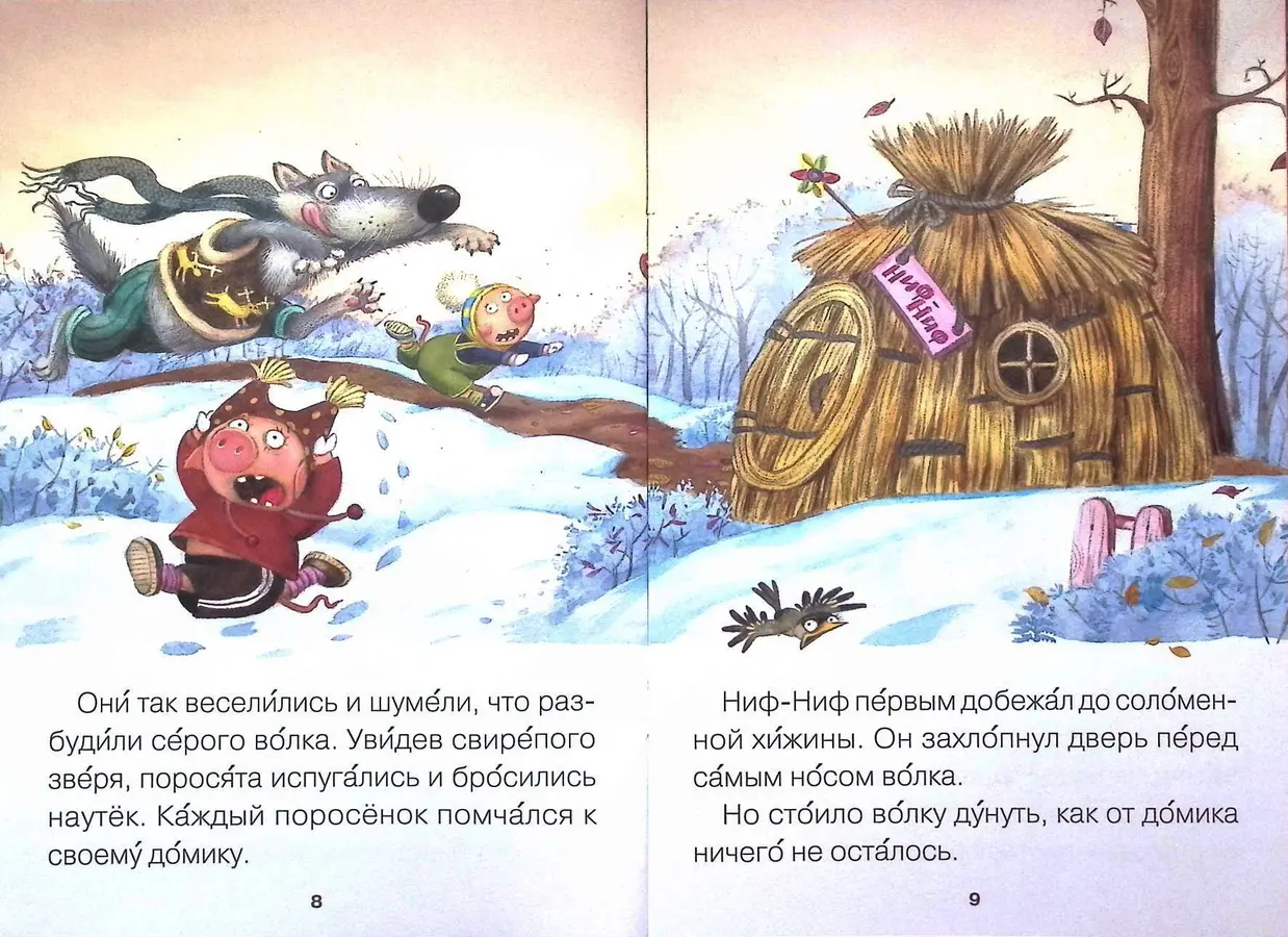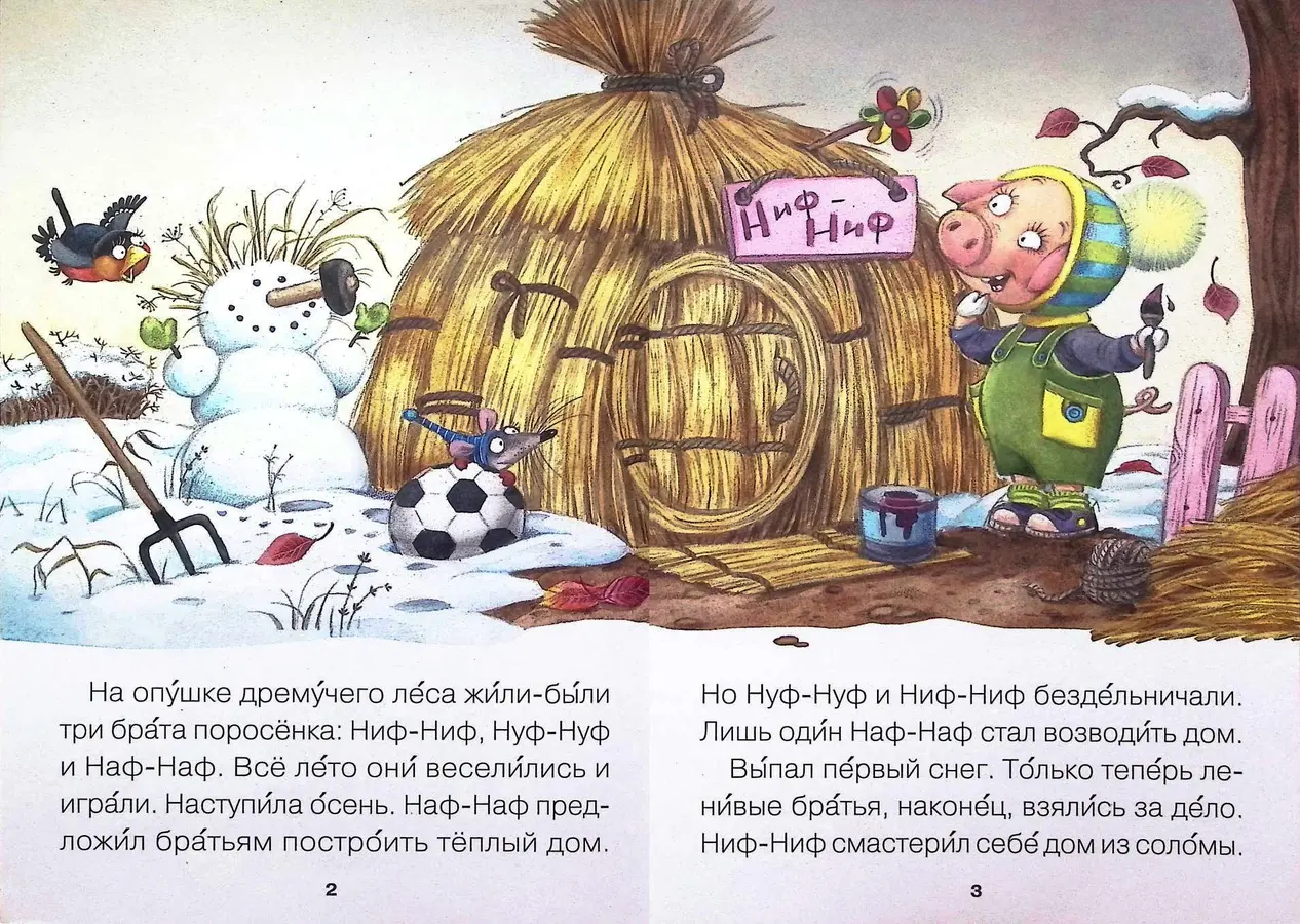 Поучительная история о трёх братцах-поросятах (Ниф-Нифе, Нуф-Нуфе и Наф-Нафе) и коварном Волке увлечёт маленького читателя с первых страниц. А чтобы процесс чтения был максимально комфортным и приносил только радость, эта книга продумана до мелочей.