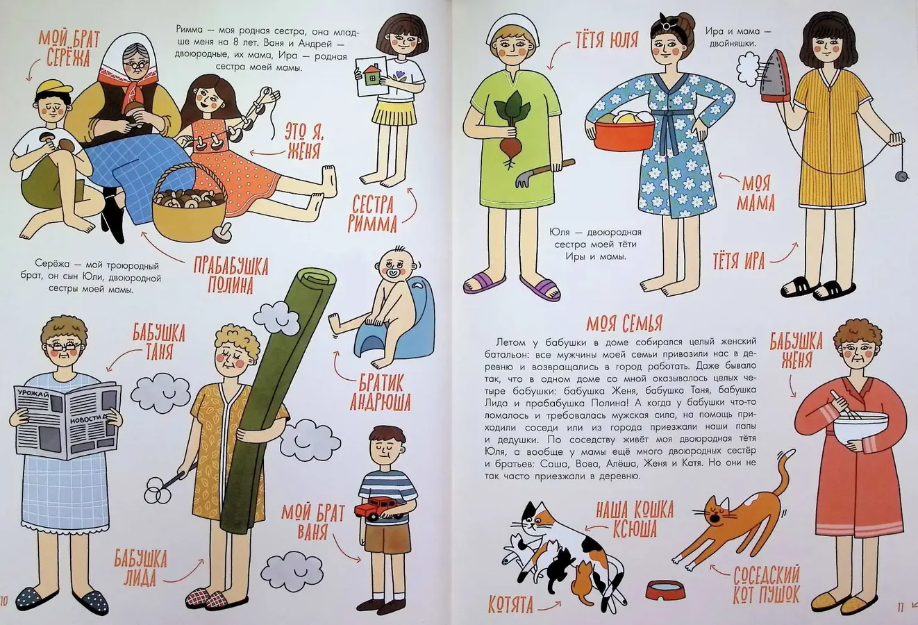 Именно такое путешествие в беззаботное детство предлагает нам "Деревня. История и быт в картинках". Автор и художник Евгения Кишмария с невероятной любовью и вниманием к деталям воссоздает атмосферу деревенской жизни своей семьи.