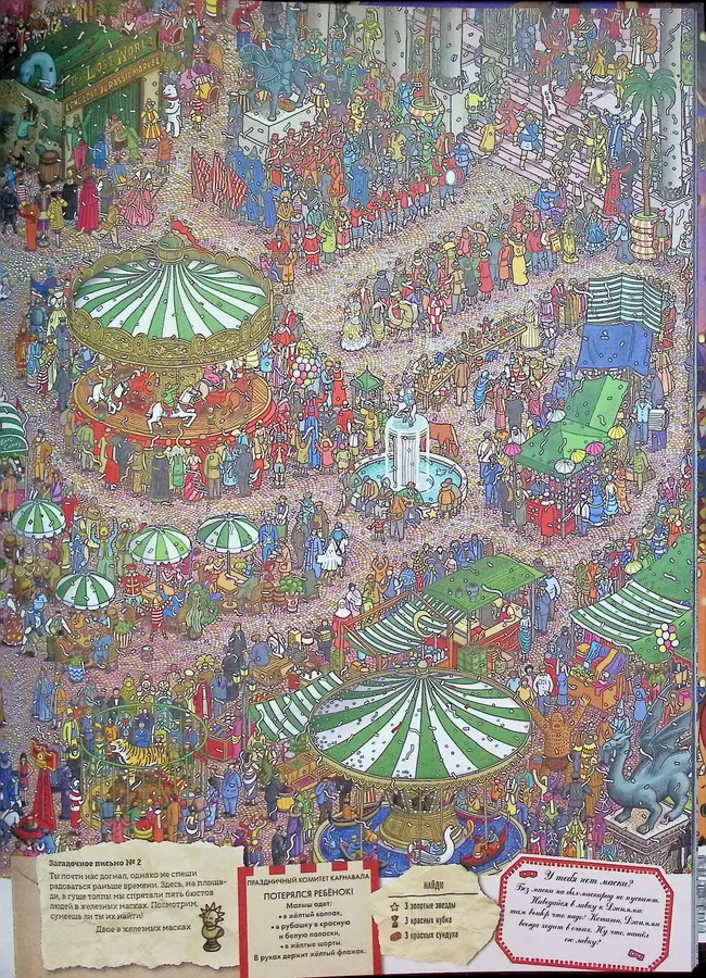 - Мир тысячи историй: на страницах виммельбуха живут сотни персонажей, у каждого из которых — свое приключение, за которым так интересно наблюдать.