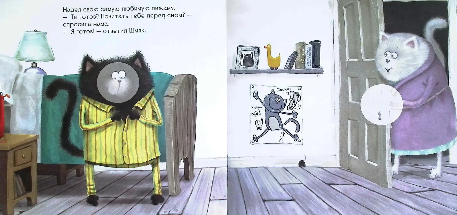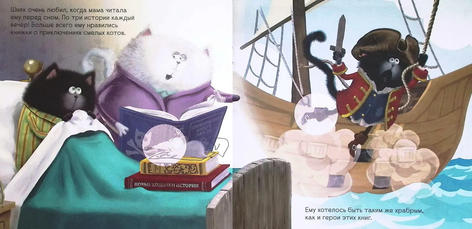 Наш любимый котёнок Шмяк обожает слушать сказки на ночь и мечтает стать таким же отважным, как герои из маминых историй. Но пока он многого боится, особенно — плохих снов. Ему постоянно снится, будто он рыцарь, который не может спасти принцессу Китти от коварного короля Шипа. Как же уснуть, если так страшно?