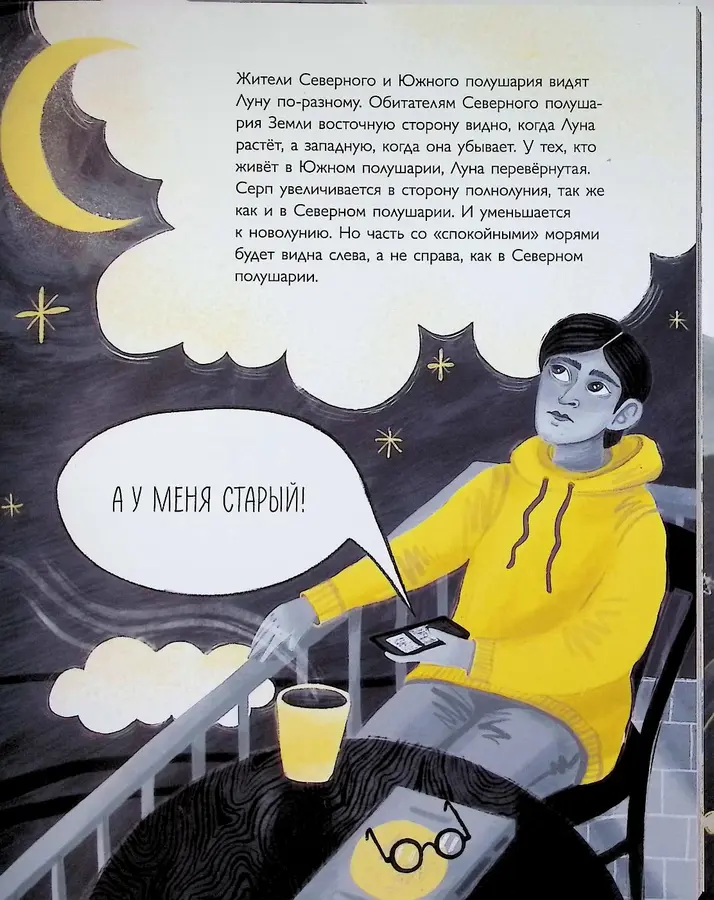 - Доступная наука: сложные понятия (гравитация, фазы, кратеры) объясняются через простые и забавные примеры, которые легко запомнить.