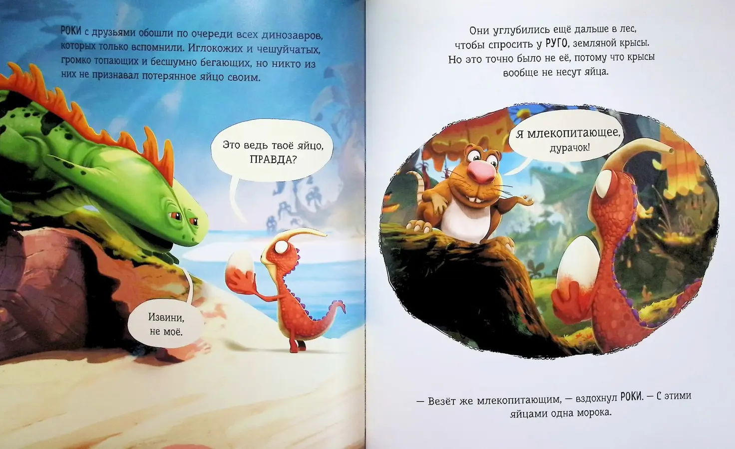 Однажды, во время веселой игры в салочки в солнечном доисторическом лесу, Роки случайно спотыкается... о самое настоящее яйцо! Одно-одинешенько! Откуда оно здесь? Чьё оно? Любопытные динозаврики решают во что бы то ни стало разгадать эту загадку и помочь незнакомому малышу найти своих родителей.