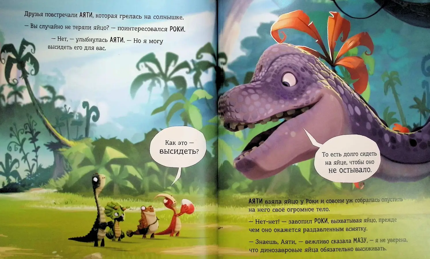Эта красочная книга о динозаврах не только знакомит маленьких читателей с разными видами доисторических ящеров, но и в увлекательной форме рассказывает о важности дружбы, учит помогать тем, кто нуждается в поддержке, и верить в свои силы. Отличный повод обсудить эти важные темы с ребенком!