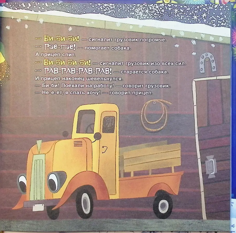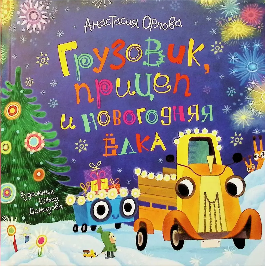 Грузовик и прицеп и новогодняя елка, Анастасия Орлова книги, новогодние книги про машинки для детей, сказка про грузовик и прицеп купить, зимние приключения машин, книги о взаимопомощи для малышей, подарок мальчику на Новый год