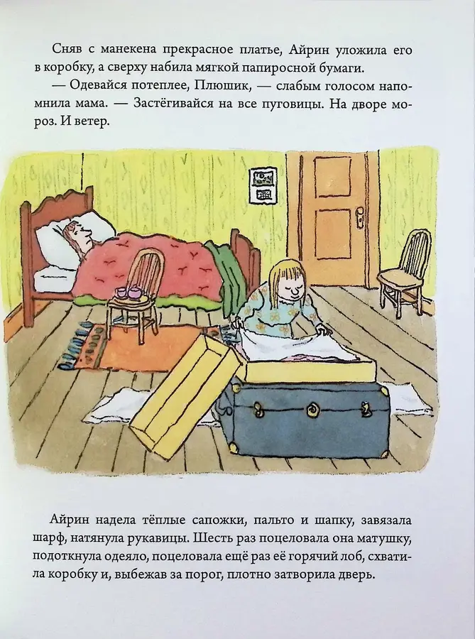 Айрин решает сама отнести платье, несмотря на жуткий мороз и ветер. Ее героизм понятен каждому ребенку: она не сражается с драконом, а просто помогает маме. Но когда ты очень маленький и взял на себя большую ответственность, так велик страх не справиться и всех подвести!