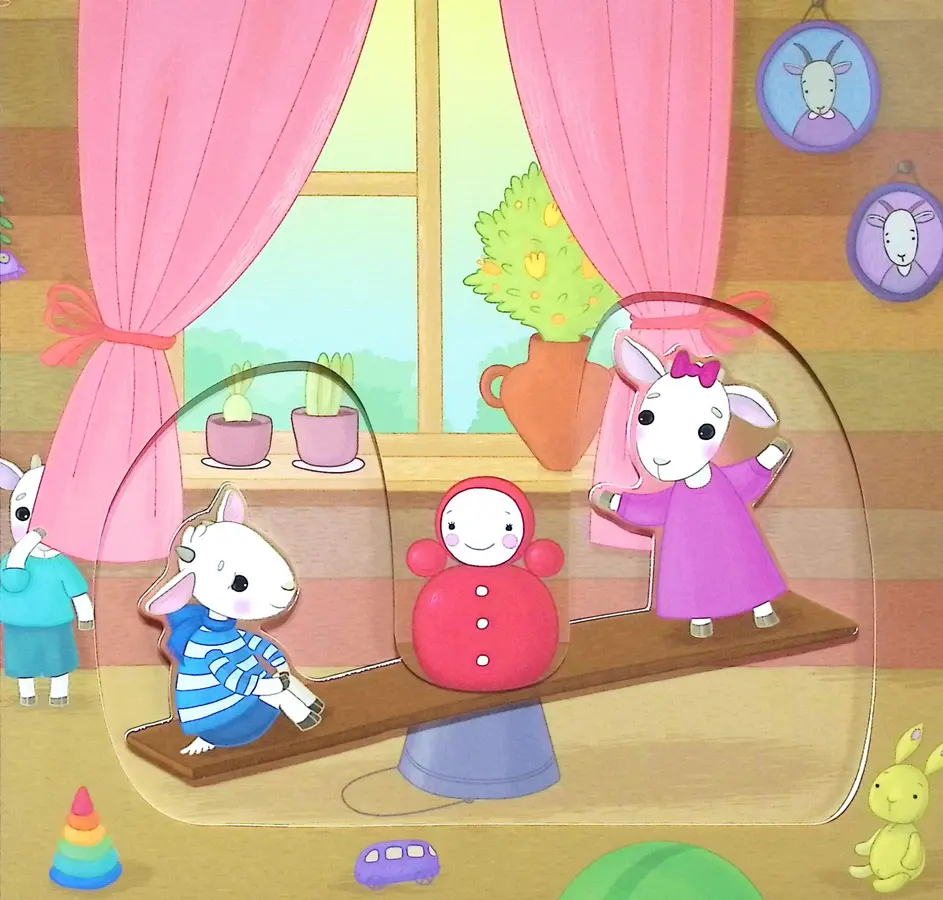 - Двигайте персонажей и помогайте козлятам спрятаться от Серого Волка!