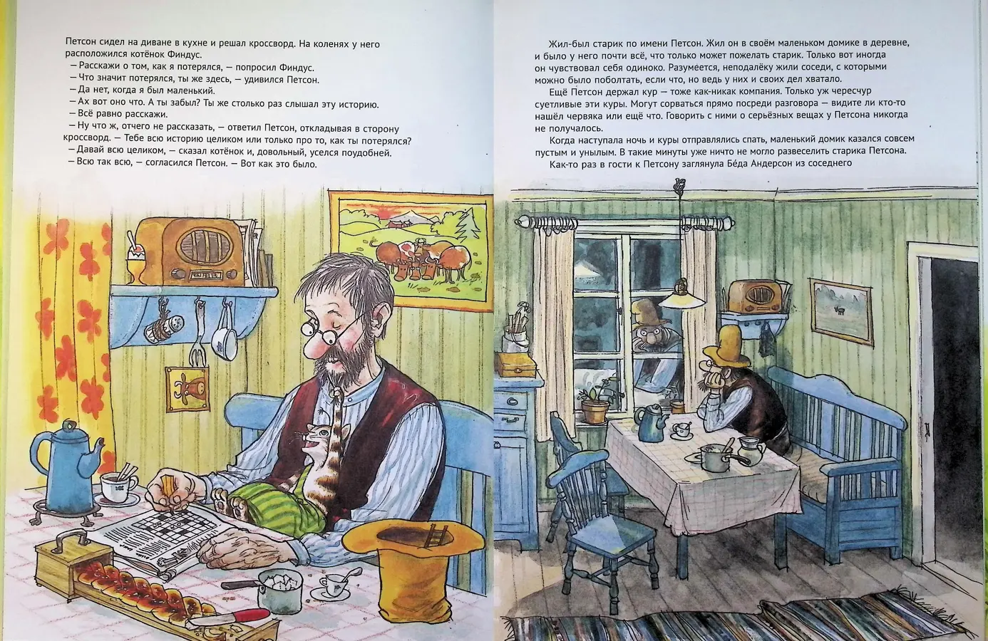 Эта книга о том, почему котенка зовут **Финдусом**, откуда у него такие смешные полосатые штаны и как ему удалось спастись от страшного чудовища, живущего в доме. Это идеальное начало для знакомства ребенка с любимыми героями.