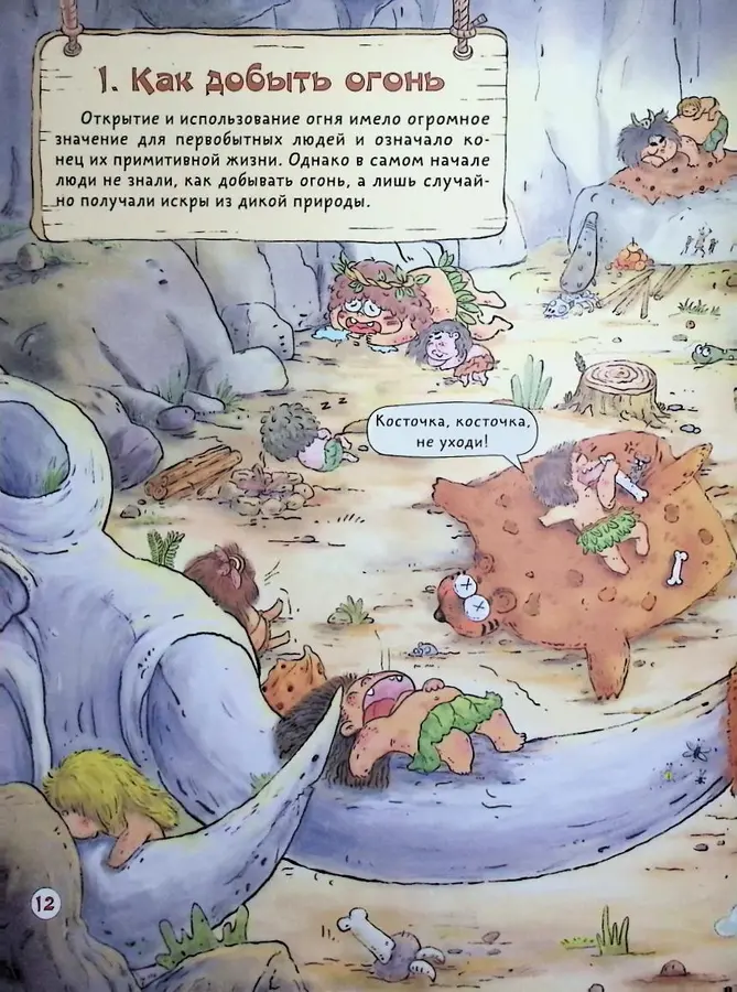 Эта познавательная и юмористическая энциклопедия на русском языке с помощью коротких текстов и красочных, ироничных иллюстраций знакомит с первыми орудиями труда и рассказывает о ключевых изобретениях человечества. Как обычный камень превратился в острый скребок, а палка — в копье? Узнайте вместе с нами!