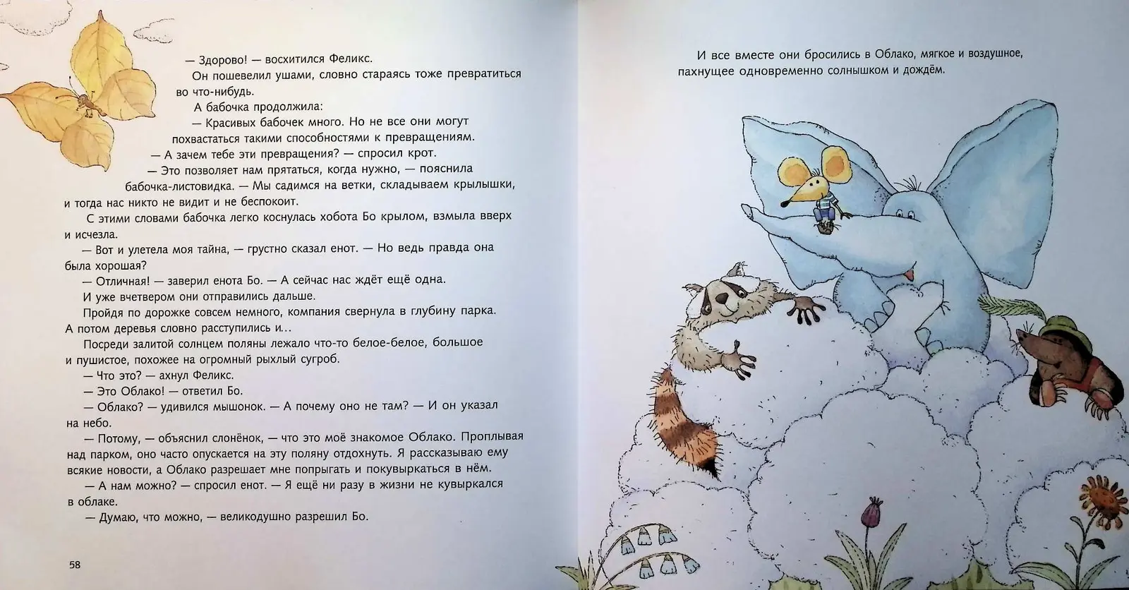 - «История с превращениями»: Что будет, если большой слонёнок вдруг станет маленьким? Бо увидит мир глазами Феликса, научится замечать удивительное в мелочах и поймет, как хорошо, что всё именно такое, какое есть!