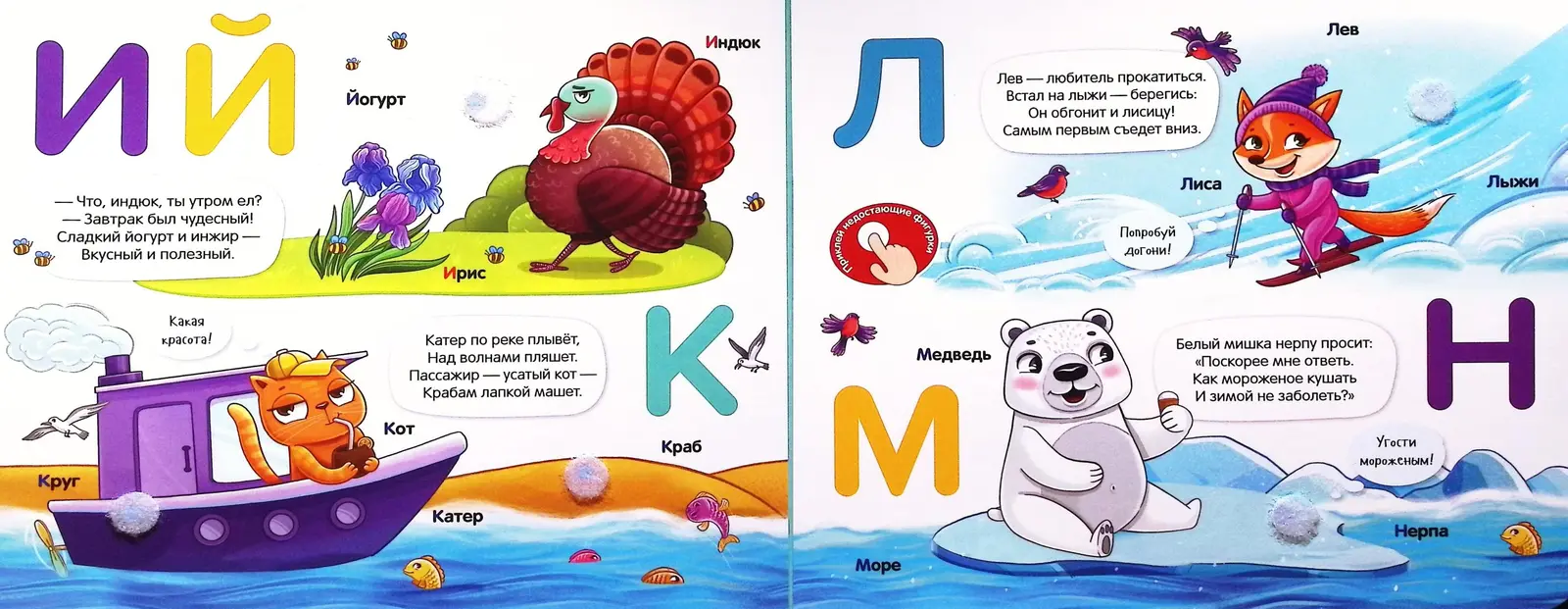 Это издание станет незаменимым помощником для дошкольников, которые готовятся к чтению. Учиться и правда гораздо веселее, когда это можно делать вместе с забавными персонажами и интерактивными элементами!