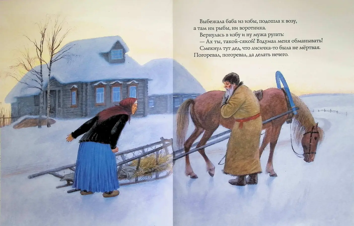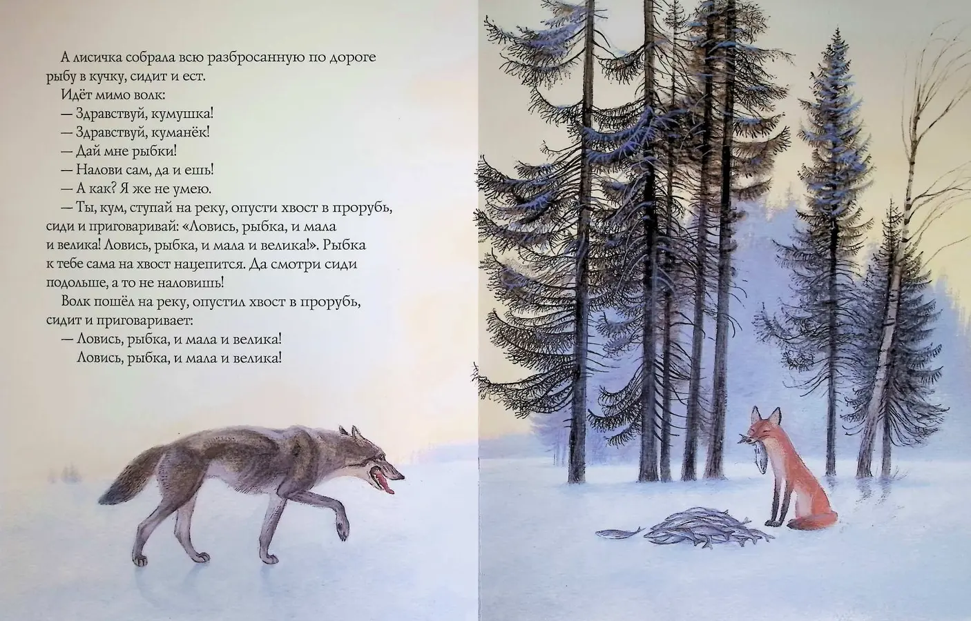 Эта классическая народная сказка на русском языке — прекрасный повод для семейного чтения. С помощью взрослых малыш поймет, что в сложных жизненных ситуациях часто выручает не сила, а смекалка, и что не стоит быть слишком доверчивым. Книга рекомендуется для чтения взрослыми детям.