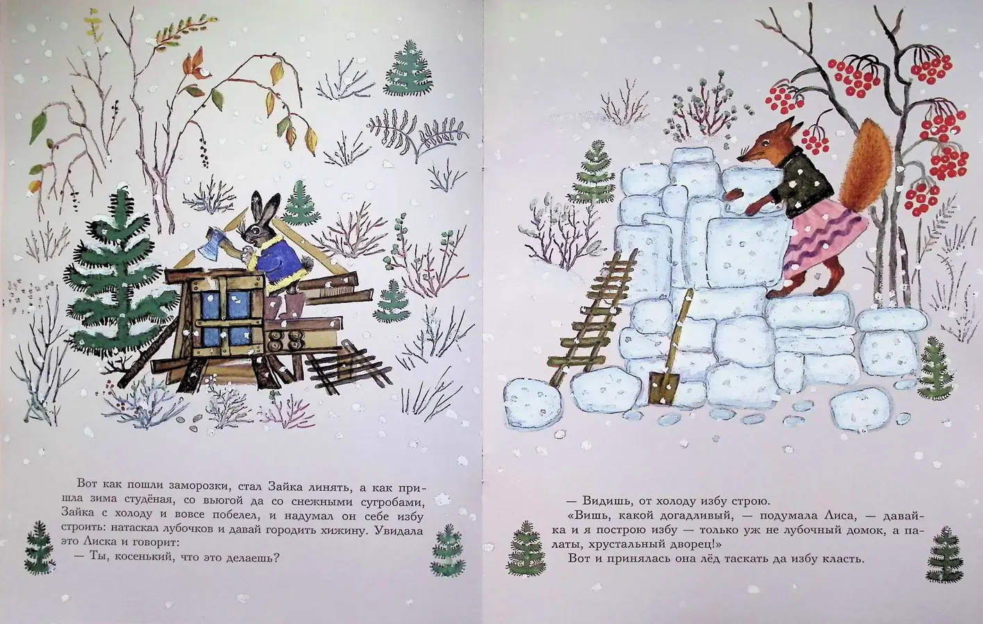 В этой книге представлена одна из самых известных и поучительных русских народных сказок. Это история про трудолюбивого зайчика, который построил себе теплую лубяную избушку, и хитрую лису, чей ледяной дворец растаял с приходом весны. Когда лиса выгоняет зайчика из его собственного дома, на помощь приходят разные звери, но прогнать хитрую плутовку сможет только самый смелый герой!