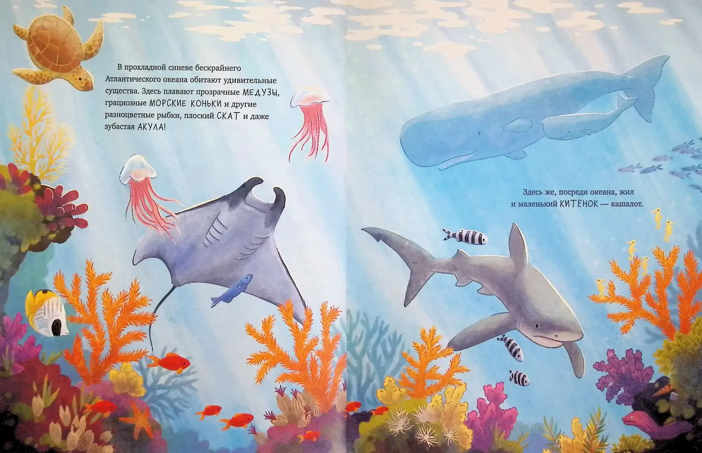 Эта чудесная красивая книга — не просто сказка, а доброе и познавательное путешествие в глубины океана. Она создана, чтобы познакомить малышей с природой и привить им любовь к её удивительным обитателям.