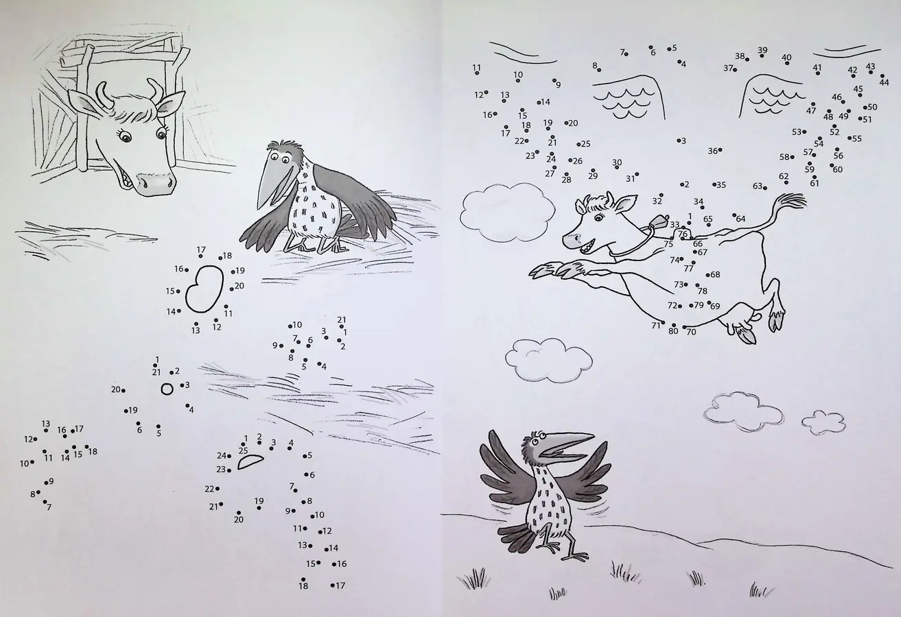 Внутри этого развивающего издания маленьких исследователей ждут 24 страницы с загадочными контурами. Чтобы узнать, что изображено на картинке, нужно аккуратно соединить точки по порядку. Это упражнение отлично тренирует мелкую моторику, внимательность и навыки счета.