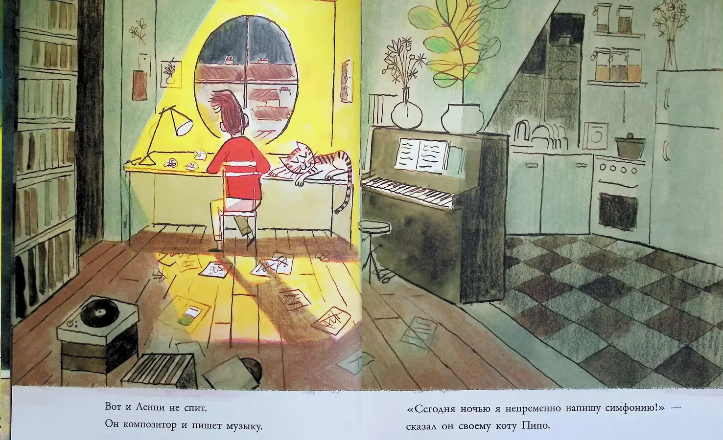 Готовы дирижировать уличным оркестром вместе с Ленни? Город уже зазвучал на первой странице — прислушайтесь! 🐈🎹🎶🛵🌳✅
