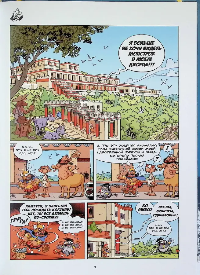 В этом юмористическом комиксе юные читатели познакомятся с ключевыми персонажами критских легенд. Всемогущий царь Минос, его жена Пасифая и находчивая Ариадна окажутся в водовороте смешных событий, в которых им помогут (или помешают!) старые знакомые: Геракл, Афина и Атлант.