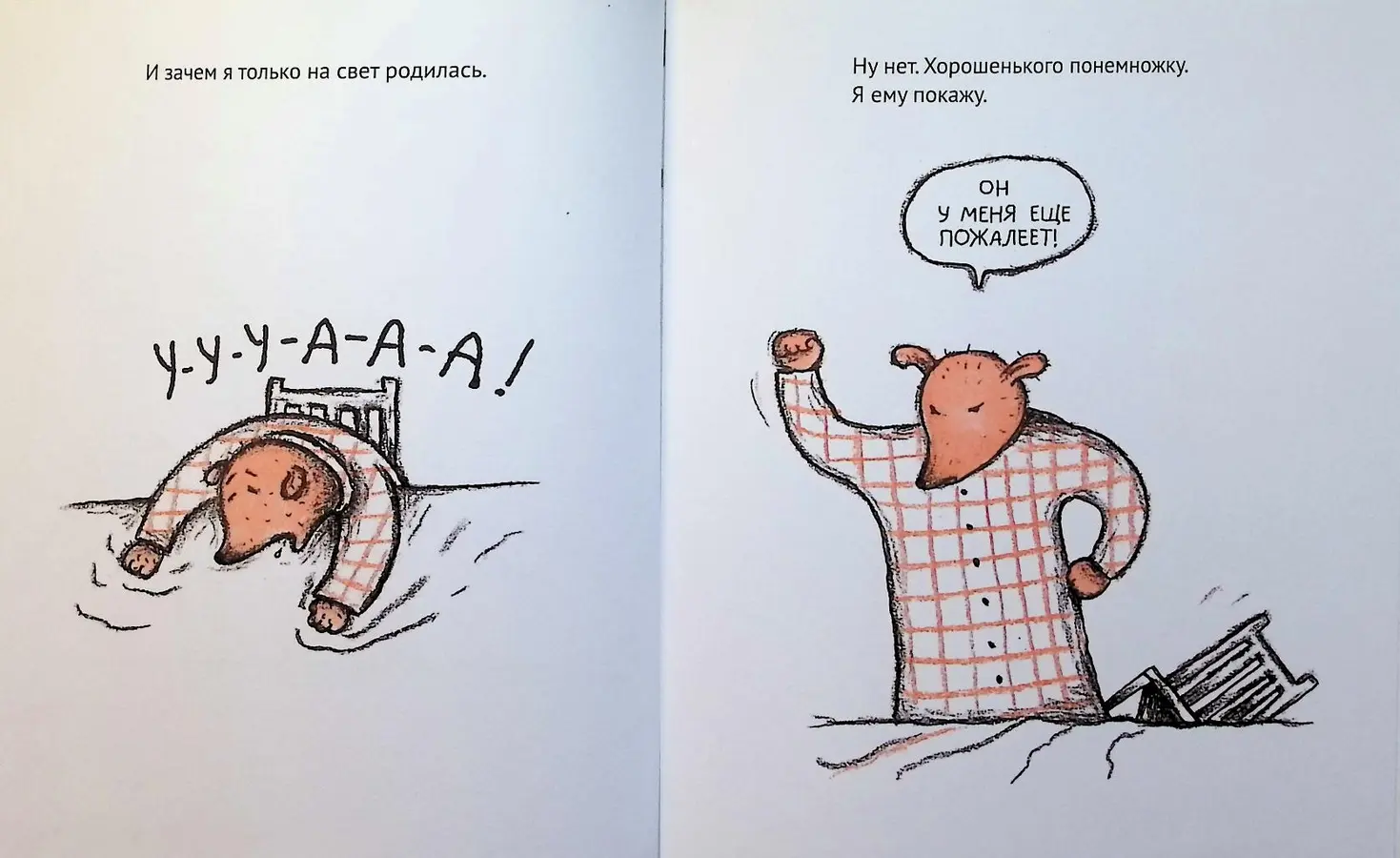 Книги об этой паре медведей давно стали в Швеции инструментом для понимания человеческих отношений. Эта психологическая сказка помогает детям разобраться в поведении «этих странных взрослых», а родителям — вспомнить, какими огромными могут казаться маленькие обиды. Книга учит осознавать свои эмоции, справляться с гневом, проживать чувство покинутости и, конечно, находить путь к примирению.