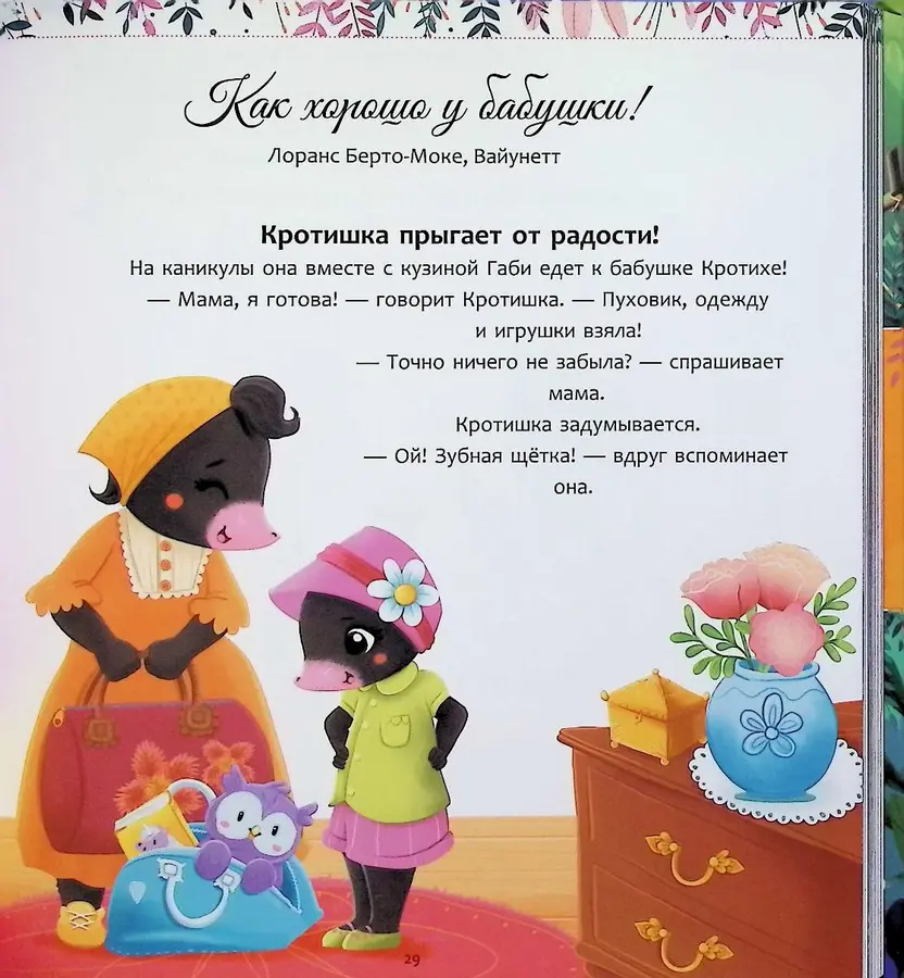 - Развитие речи и воображения: Простые, но образные тексты расширяют словарный запас малыша и учат его сопереживать героям.
