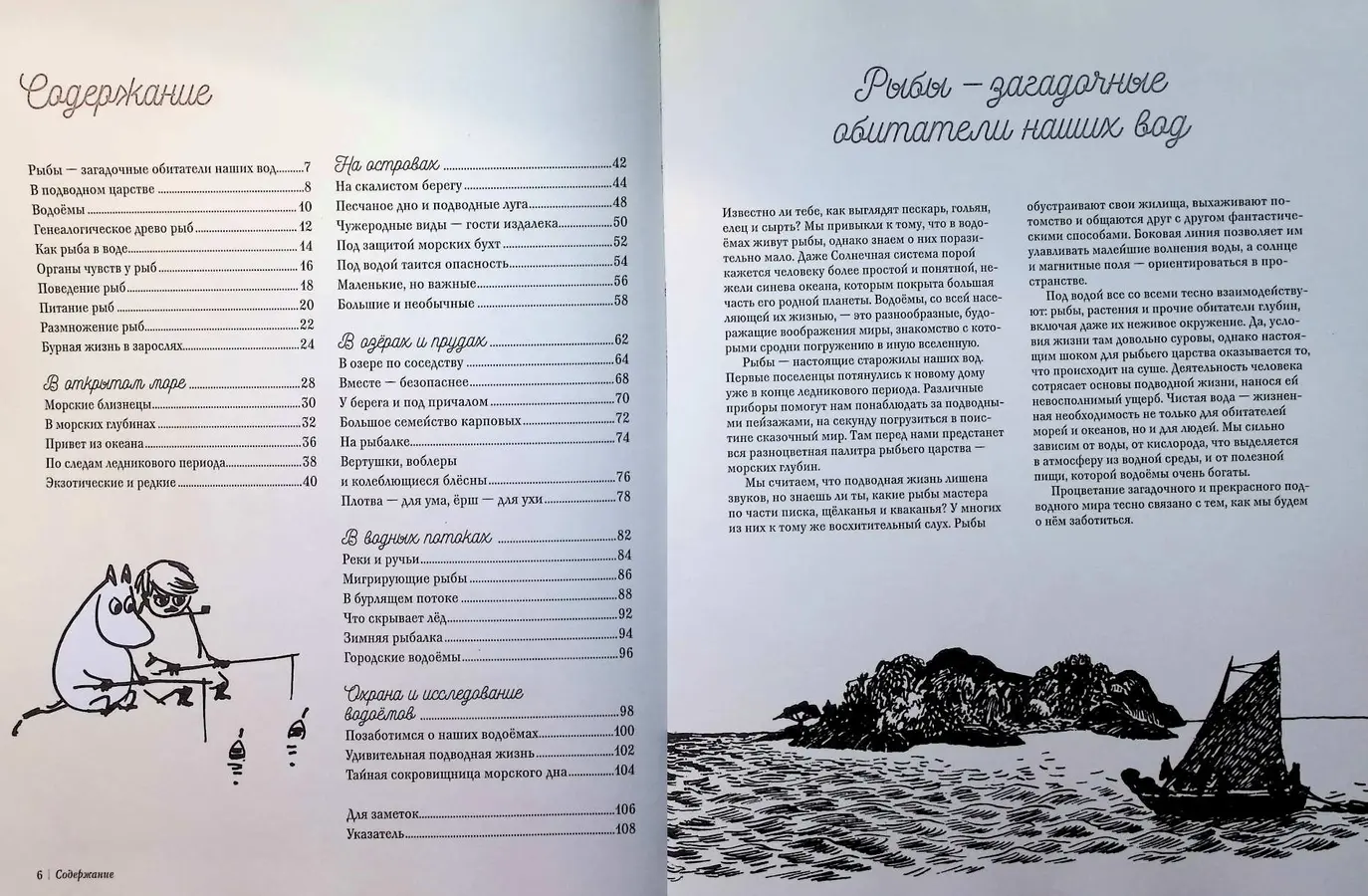 Этот увлекательный гид по природе на русском языке содержит полезные факты о почти сотне видов рыб, обитающих в Северной Европе. Но главная его ценность — это оригинальные черно-белые иллюстрации, созданные рукой самой Туве Янссон.