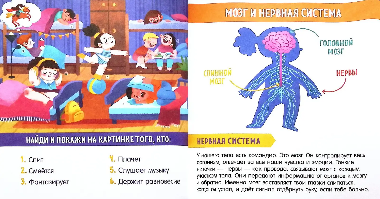 На каждом развороте ваш ребёнок будет знакомиться с тем, как устроен наш организм. Рассматривая яркие иллюстрации с крупными деталями, он сможет находить и называть части тела и предметы, связанные со здоровьем. Книга помогает выучить 58 самых нужных слов о теле человека и объясняет, как и зачем нужно заботиться о себе в разное время года.