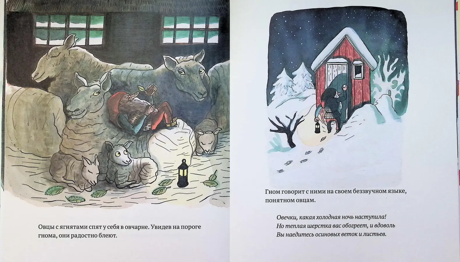 Гном говорит на особом, беззвучном языке, понятном лишь сердцам. Каждому животному и каждому спящему человеку он шепчет слова утешения, напоминая, что холода не вечны и лето обязательно вернется. Эта поэтичная сказка гармонично сочетает в себе прозу и стихи, создавая медитативный ритм, под который так приятно засыпать. Книга развивает чувство безопасности, эмпатию и учит терпеливому ожиданию прекрасного.