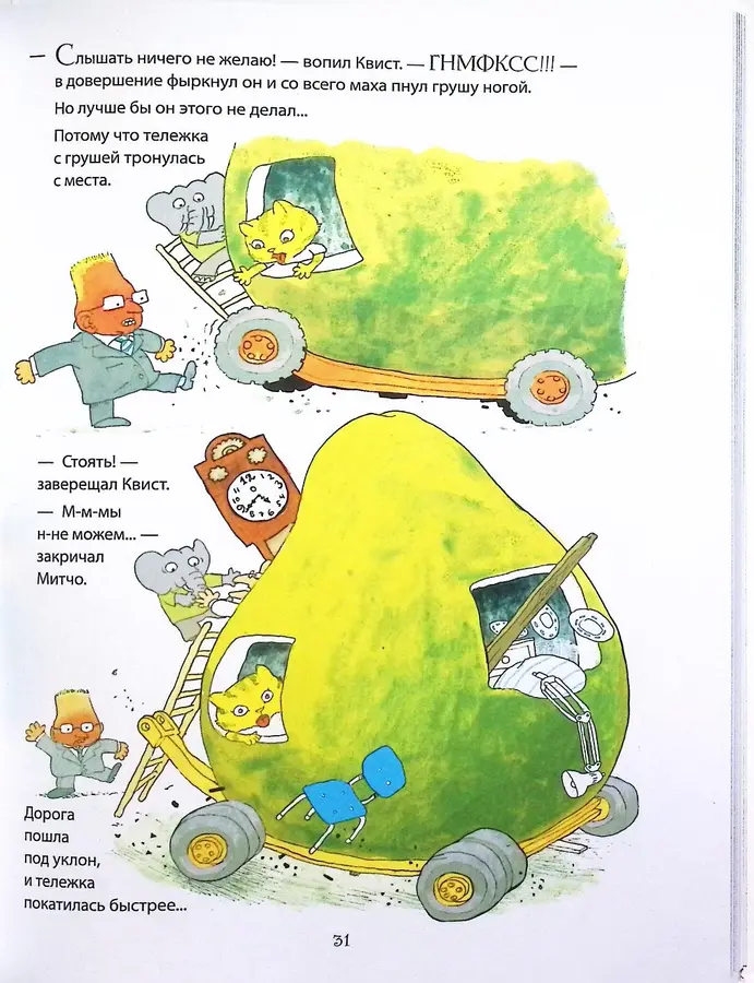 Что же делать с таким чудом? Конечно, построить из него корабль и отправиться в путь! На своём грушевом судне герои смело плывут навстречу приключениям. Эта книга — прекрасная история, которая учит ценить дружбу, проявлять находчивость и не бояться трудностей. Смогут ли друзья преодолеть все преграды и спасти своего бургомистра?