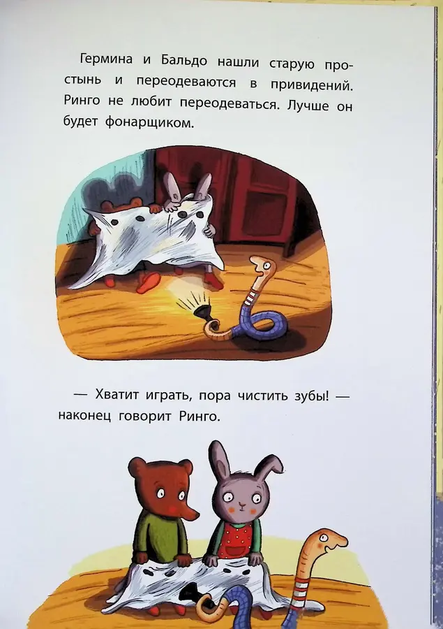 Ура-а-а! Сегодня особенный вечер: зайчонок Гермина и её верный друг червячок Ринго остаются ночевать у медвежонка Бальдо. Книга «Ночные приключения» — это добрая и динамичная сказка о том, как превратить обычный вечер в незабываемый праздник дружбы.
