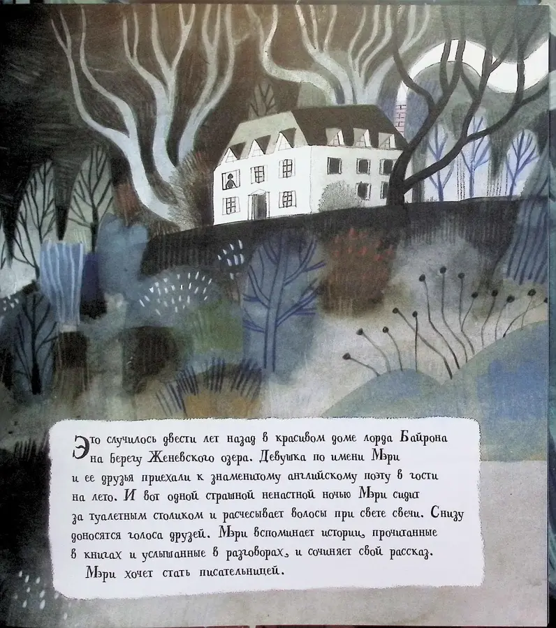 Имя Франкенштейна знают все, но мало кто помнит, что за этим зловещим образом стоит юная девушка с невероятным воображением. Эта биографическая сказка переносит нас в 1818 год, на виллу лорда Байрона, где под рокотание грозы и блеск молний над Женевским озером родилась величайшая история в истории литературы. Писательница Линн Фултон создала захватывающее повествование о том, как Мэри Шелли приняла вызов поэта и написала «страшный рассказ», положивший начало научной фантастике.
