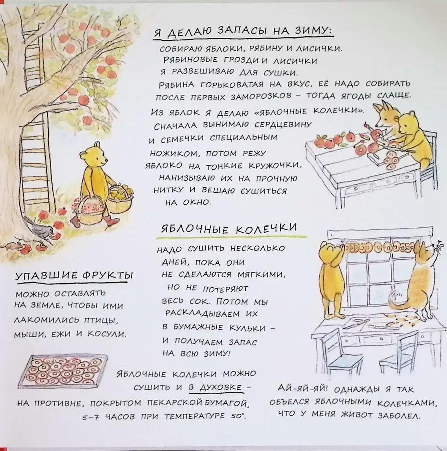 Как и все книги серии, созданной шведской художницей Гуниллой Ингвес, "Осень Мишки Бруно" радует нежными иллюстрациями в пастельных тонах и множеством деталей, которые так любят рассматривать маленькие почемучки.
