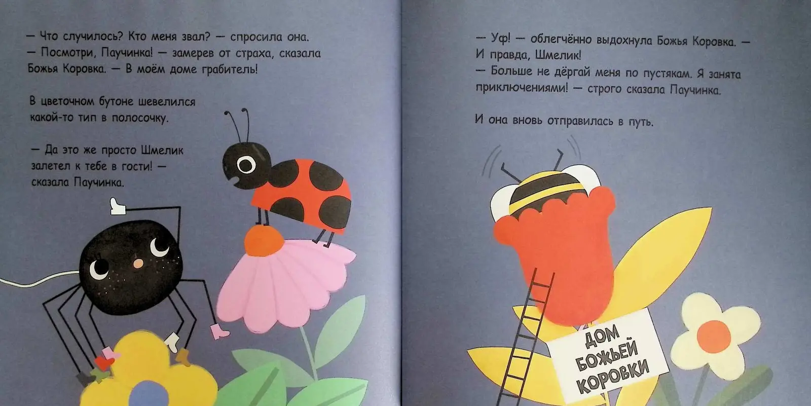 Самое интересное в этой книжке-картинке – это двойной взгляд на события! Сначала мы видим мир глазами бесстрашной Паучинки. Друзья постоянно дергают ее за паутинку, зовут на помощь по пустякам – ну разве не трусишки? Но если присмотреться к ярким иллюстрациям Карли Гледхилл повнимательнее...