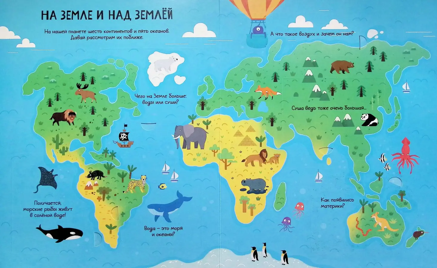 На страницах издания собраны самые важные и удивительные факты. Ребенок узнает, как на планете зародилась жизнь, где находится полюс холода и на скольких языках говорят люди в разных странах. Книга дает базовые знания по географии и биологии, отвечая на вопросы о самой длинной реке, самой высокой горе и границах государств.