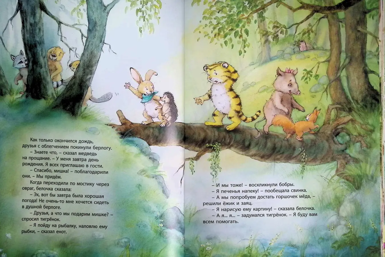 Все лесные зверята заняты делом — готовят подарки для своего друга Медведя. И только маленький, шаловливый тигрёнок, кажется, только мешает. Он очень хочет помочь, но все его попытки приводят лишь к суматохе. Неужели он все испортит?
