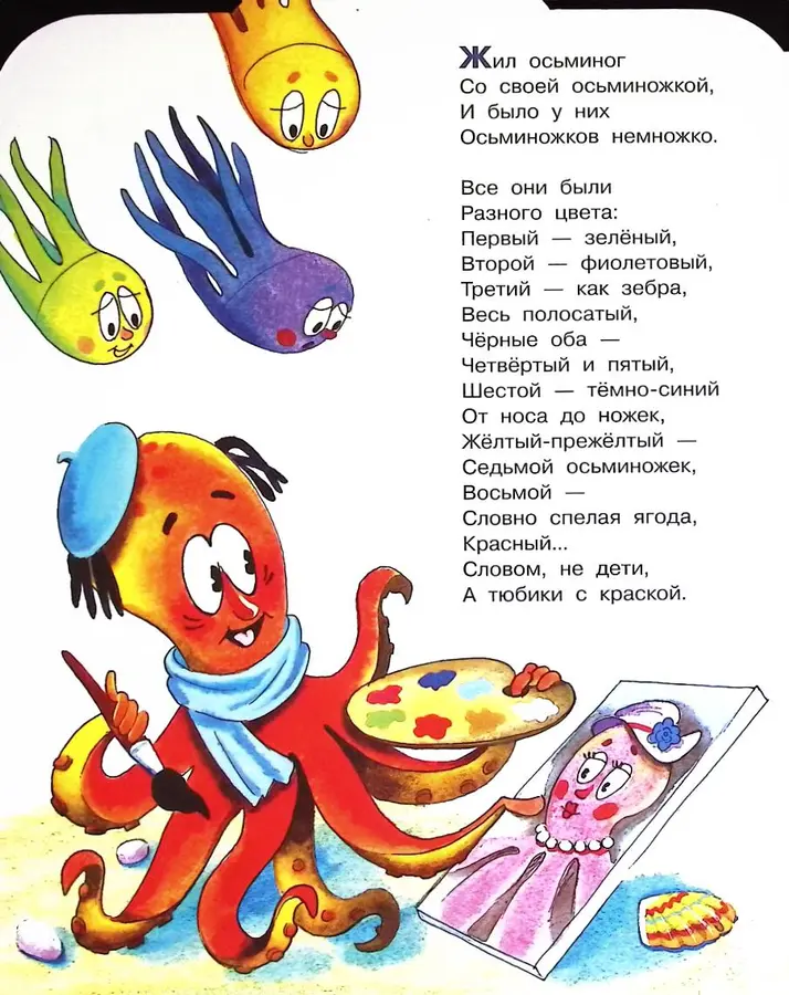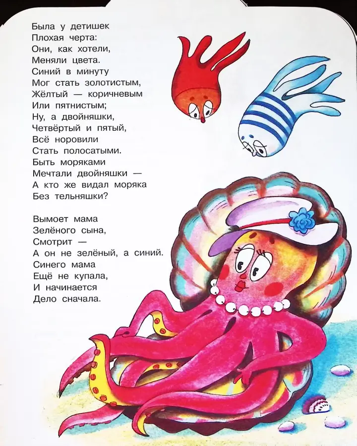 В этой книге вы познакомитесь с необычной семьёй. Маленькие осьминожки, как и все дети, обожают хулиганить и познавать мир. А ещё они умеют менять цвет, чем совершенно запутывают своих родителей! И вот однажды вся эта весёлая компания остаётся на попечении папы-осьминога. Справится ли он? Читайте и узнаете!