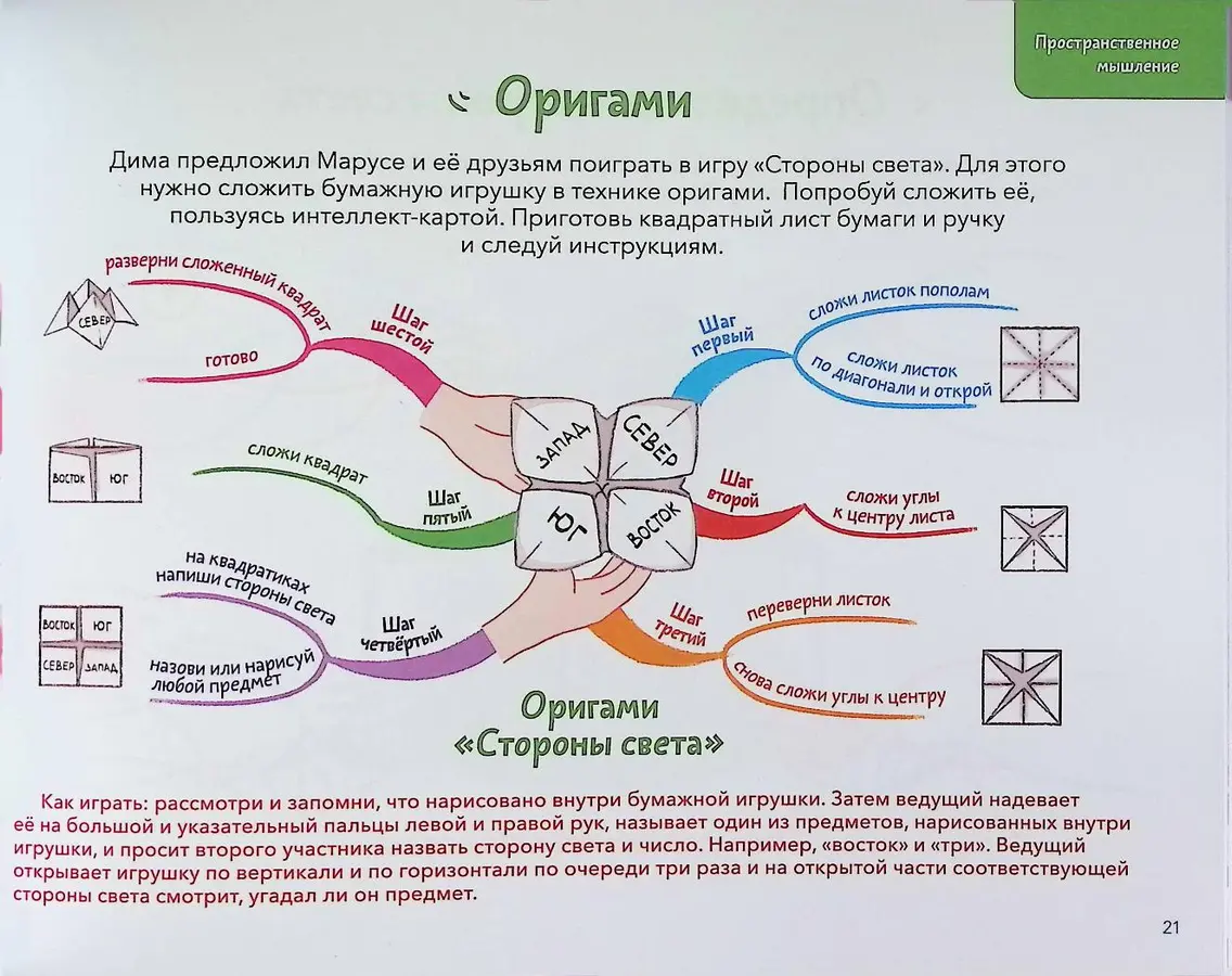 В этой развивающей тетради методика адаптирована специально для детей от 6 лет. Пособие разделено на четыре ключевых блока, которые важно проходить последовательно для достижения максимального эффекта: пространственное мышление, память, творческие способности и логика.