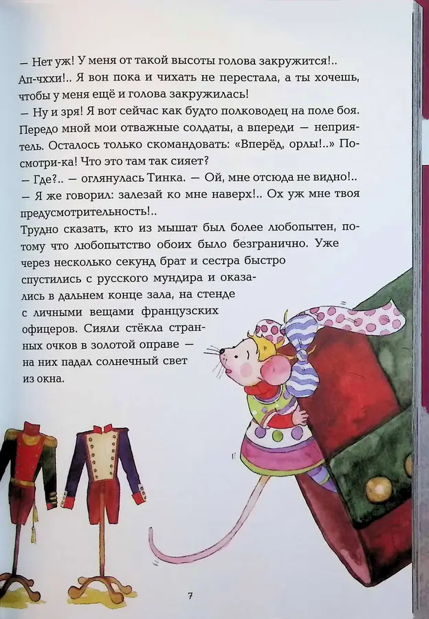 Вместе с отважными героями читатели окажутся на Бородинском поле, увидят пылающую Москву и даже заглянут на кухню самого Наполеона! Узнайте, как французские коты обходятся с русскими мышами-пленницами, чуть не случившемся казусе с супом для императора и, конечно, о том, как дети и мыши, спасая друг друга, совершили настоящий подвиг.