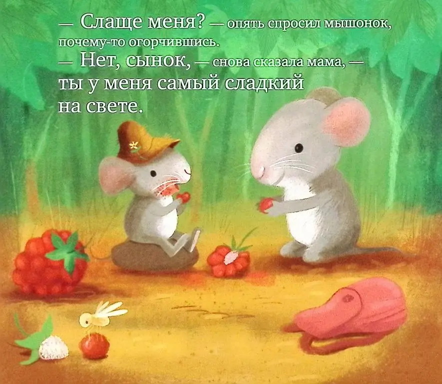 Присоединяйтесь к уютной прогулке мамы-мышки и ее маленького сынишки по солнечному лесу. Вместе они будут слушать пение птиц, собирать сладкие ягоды и наслаждаться обществом друг друга. Эта простая и милая книжка-картонка рассказывает о самом главном — о безграничной и безусловной любви родителей к своим детям.