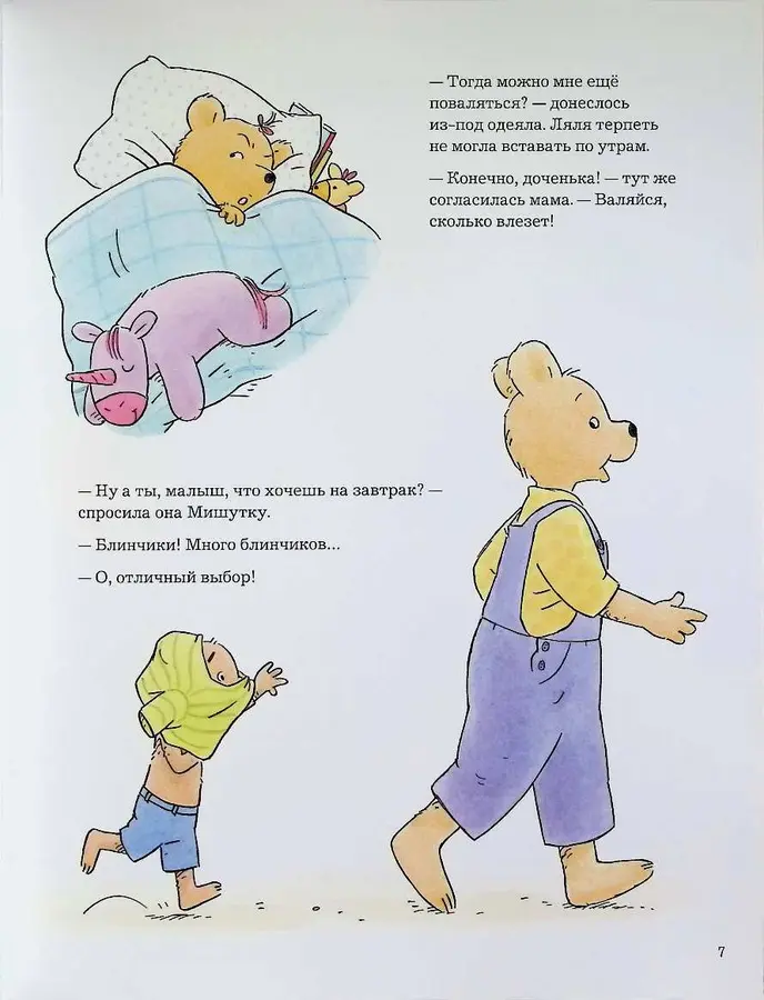 Однажды мама Медведица устроила своим детям, Ляле и Мишутке, необычный праздник — день, когда можно абсолютно всё! Конфеты на завтрак? Пожалуйста! Прыгать на кровати? Сколько угодно! Устроить бассейн прямо в комнате? Не вопрос!