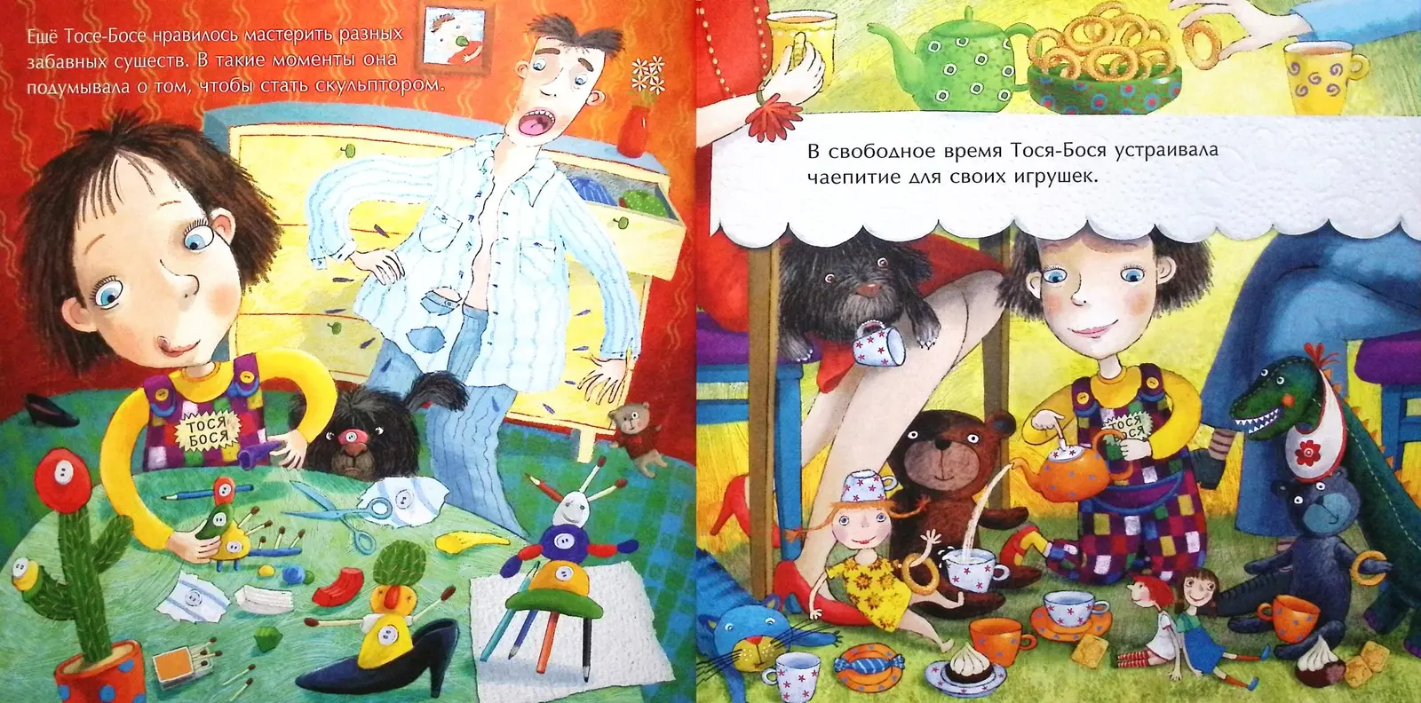 Познакомьтесь с девочкой по имени Тося-Бося. Она — замечательная выдумщица: обожает кататься на велосипеде, строить эльфийские замки и пить чай с плюшевыми медведями. У неё есть только один ма-а-аленький недостаток: Тося-Бося терпеть не может убирать за собой игрушки.