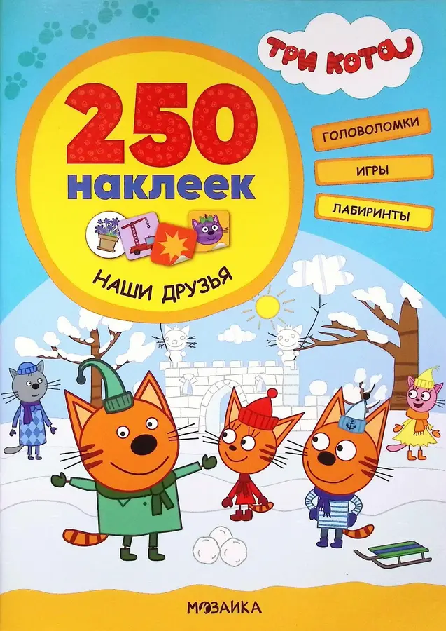 Миу-миу-миу! Ваш ребёнок обожает мультсериал «Три кота»? Тогда эта большая книга-игра с 250 наклейками — идеальный подарок, который увлечёт его надолго! 🐱