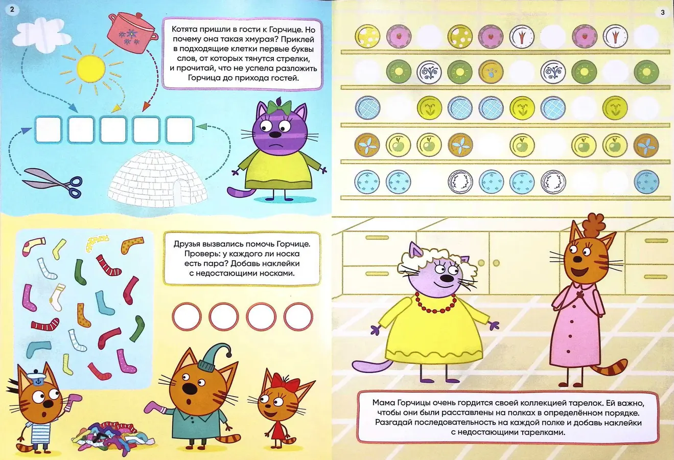 На каждой странице малыша ждут любимые герои — Коржик, Компот, Карамелька и их друзья. А ещё — интересные головоломки! И самое весёлое — все задания нужно выполнять с помощью наклеек!
