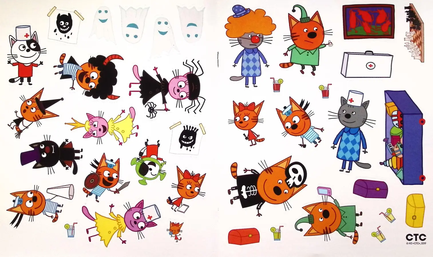 Миу-миу-миу! Если ваш ребёнок обожает мультсериал «Три кота», эта яркая книжка с наклейками станет для него настоящим подарком! 🐱