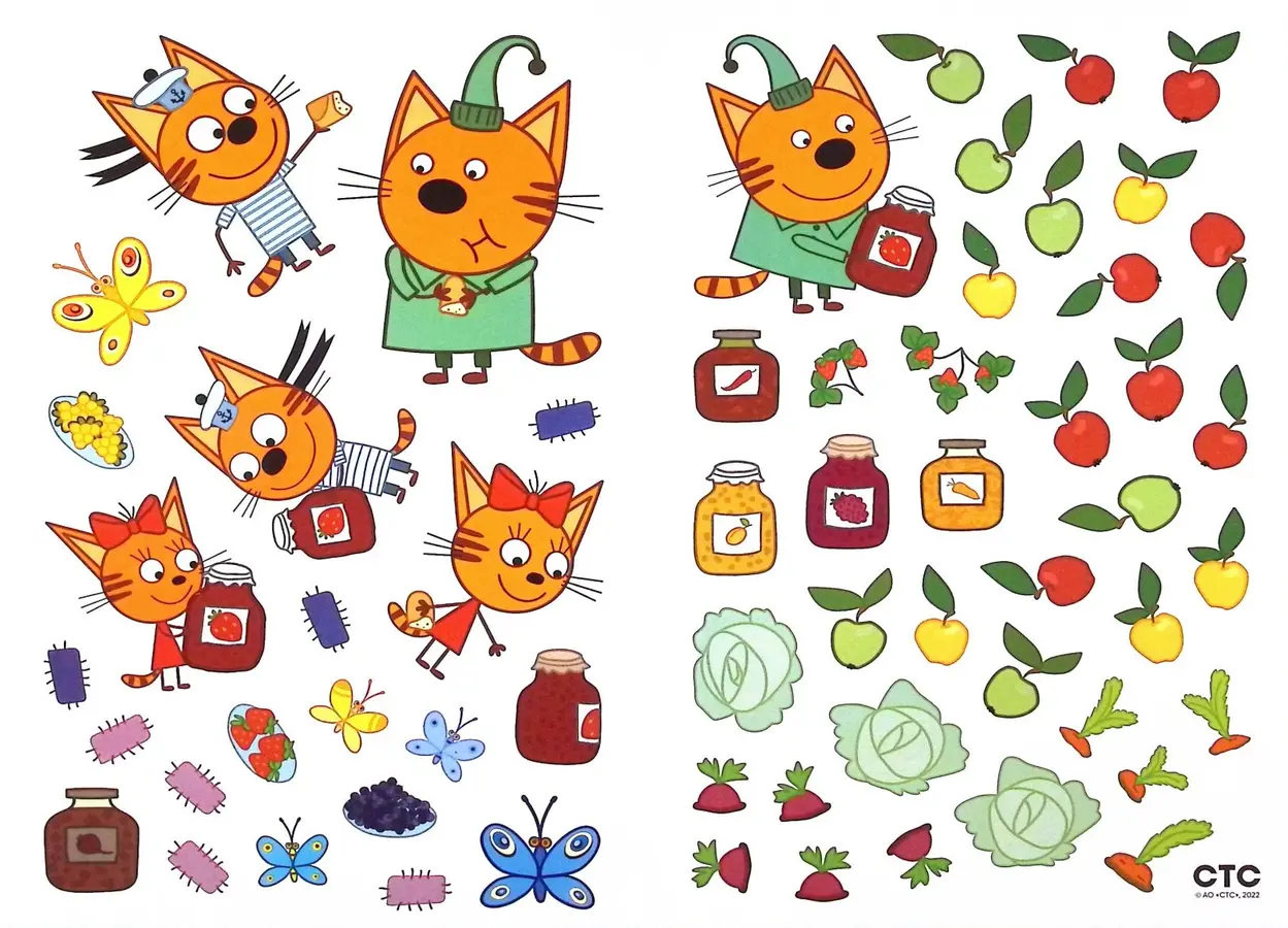 Миу-миу-миу! Если ваш ребёнок обожает мультсериал «Три кота», эта яркая книжка с наклейками станет для него настоящим подарком! 🐱