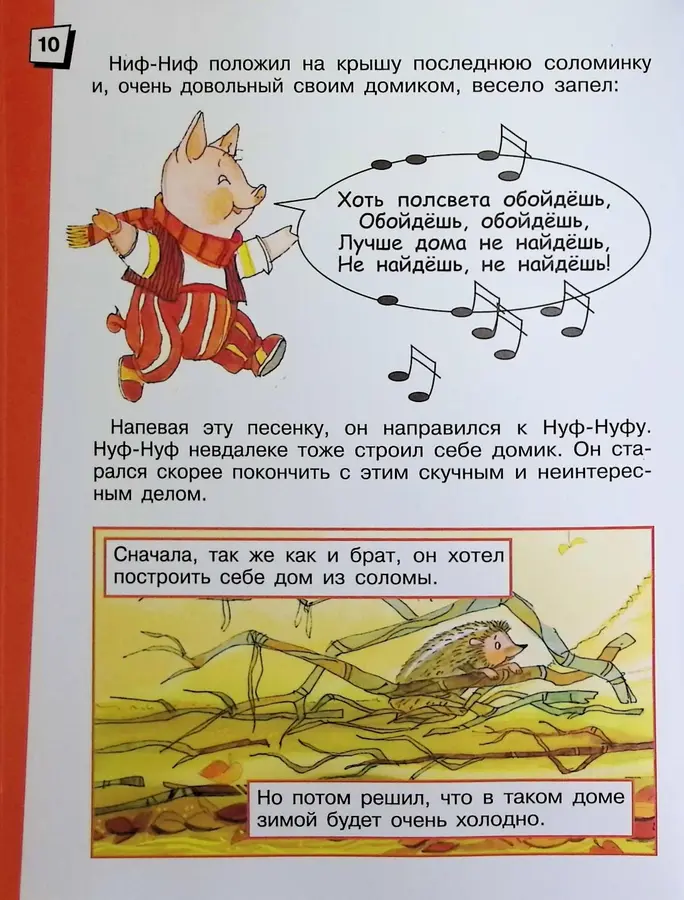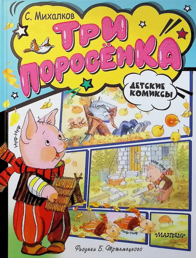 Это издание оформлено в виде веселого комикса с замечательными рисунками Б. Тржемецкого, что особенно понравится малышам. Вместе с поросятами можно не только следить за увлекательным сюжетом и помогать им строить домики, но и спеть их знаменитые веселые песенки!