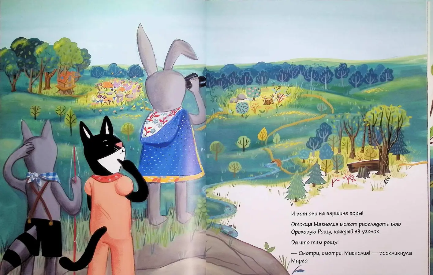 Главная героиня этой истории — любознательная зайка Магнолия. Она с увлечением нарисовала подробную карту их родной Рощи и окрестностей. Карта почти готова, и Магнолия мечтает показать её друзьям на предстоящей встрече!
