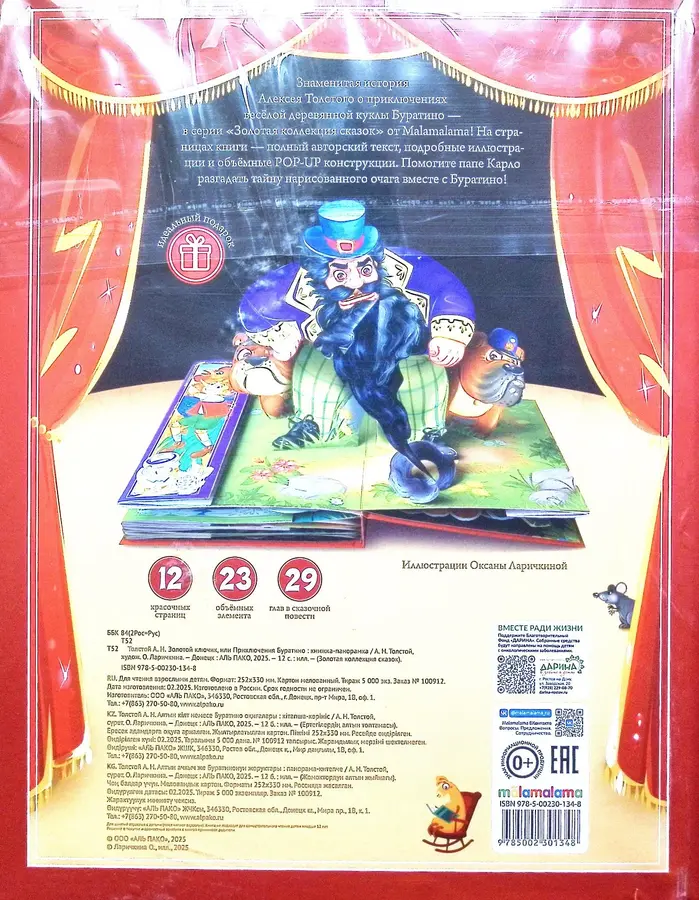 Приготовьтесь заново открыть для себя знаменитую и всеми любимую повесть-сказку! Эта подарочная книга — не просто история, а настоящий театр на страницах, где приключения деревянной куклы и его друзей оживают в невероятных pop-up конструкциях.